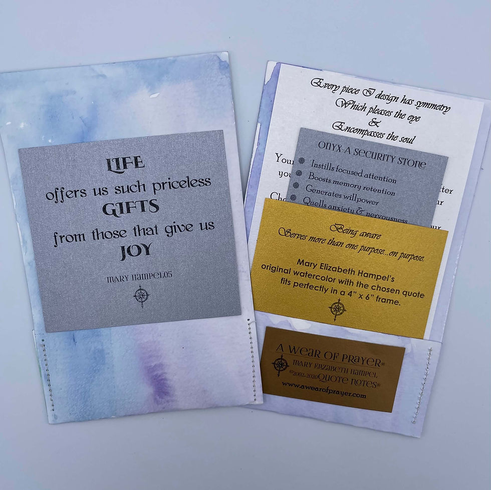Mary Elizabeth Hampel's inspirational jewelry combines natural healing stones for wellness and her original watercolors are an expression of nature.